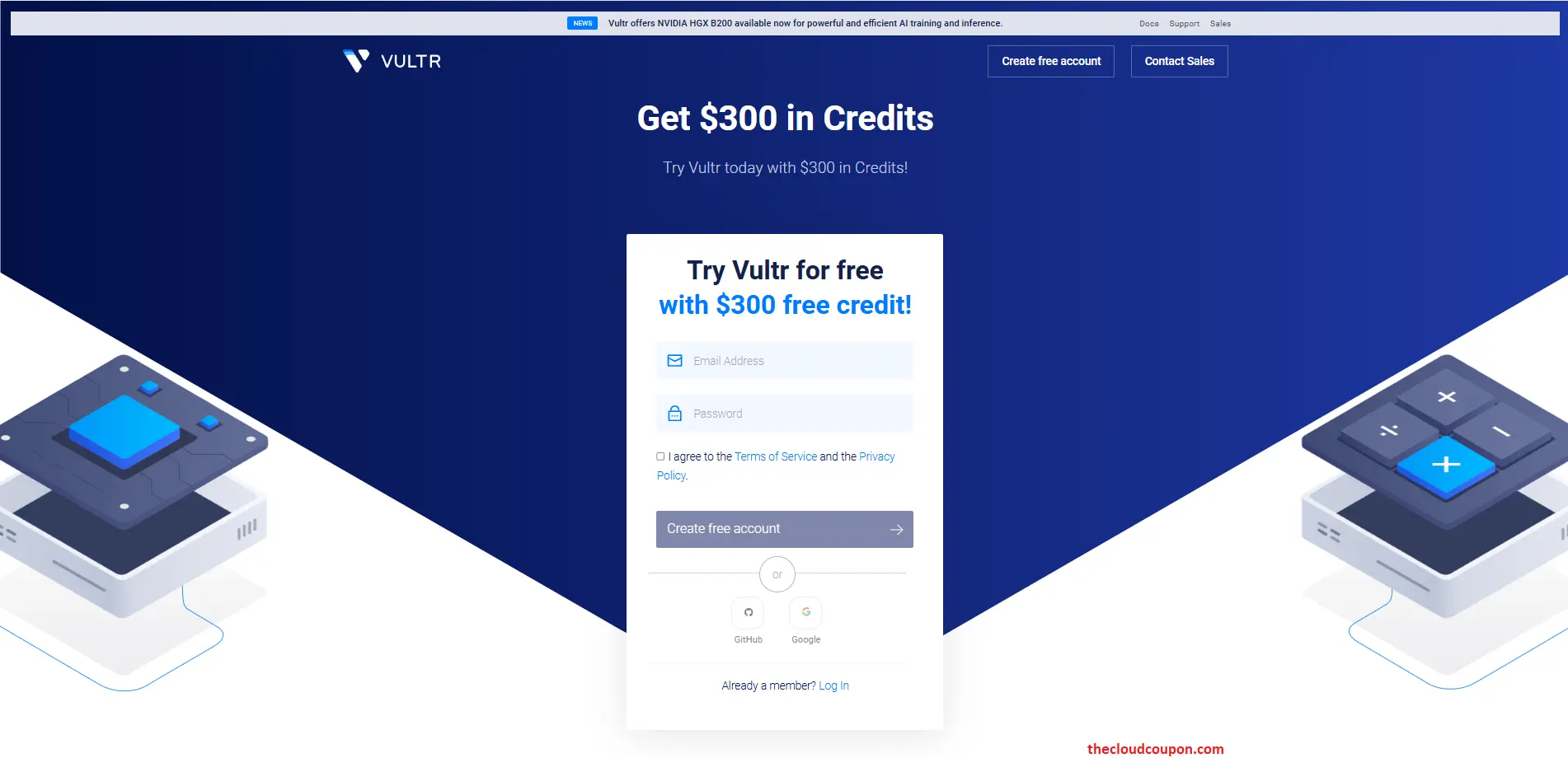 Create New Account & Receive A $300 Vultr Free Credit