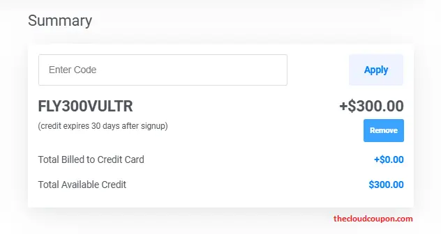 $300 Free Credit | Get $300 credit for new Vultr accounts, usable within 30 days (or up to 12 months depending on the current promotion). Credit card or PayPal verification required. | FLY300VULTR |